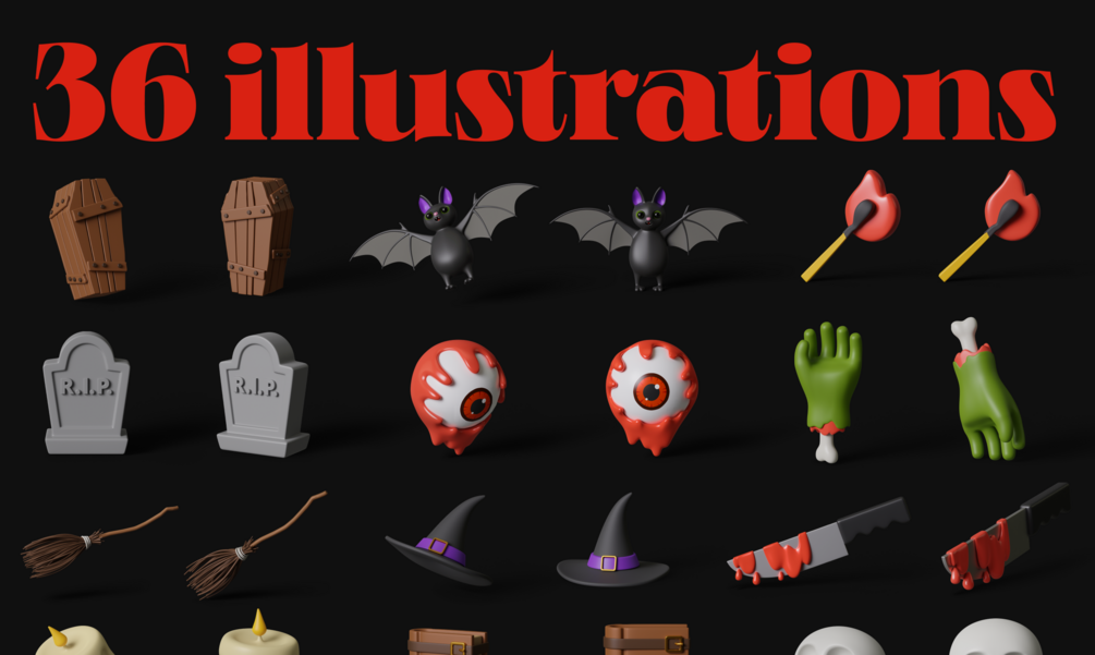 🔥 Download more free illustrationsAwesome Halloween 3d pack. Super high quality renders. Stylish and colorful elements. Great for stories, promo and UI projects.